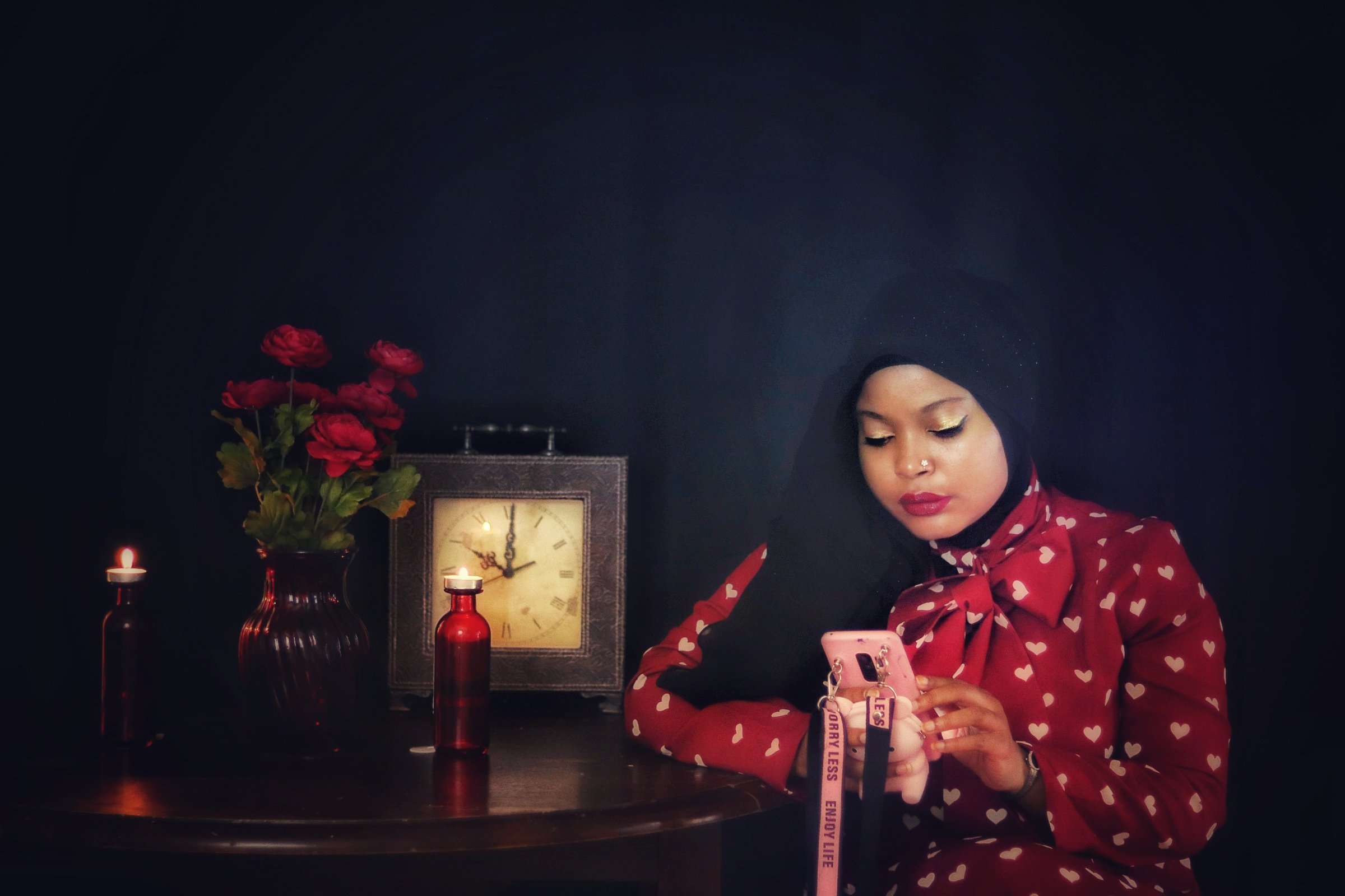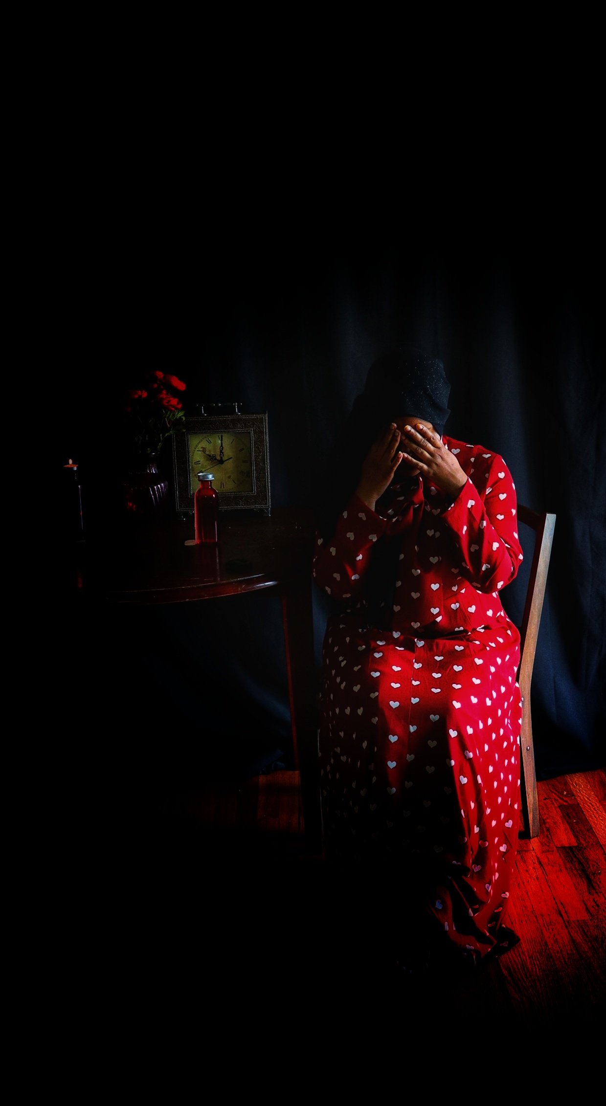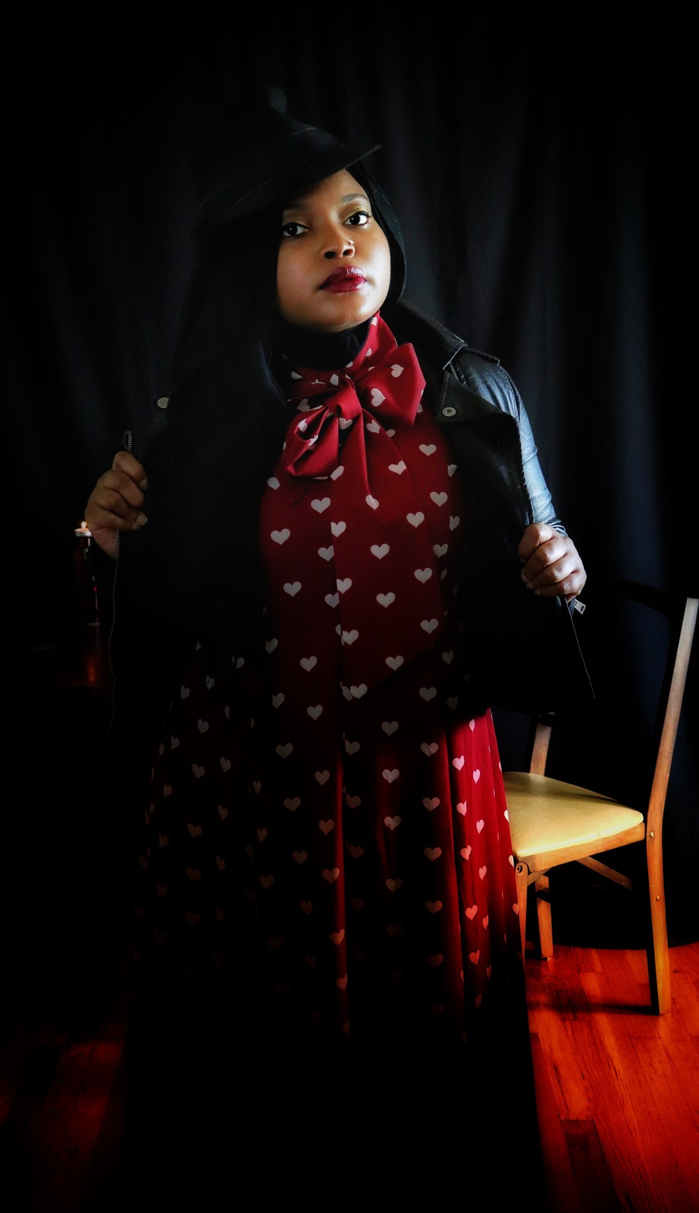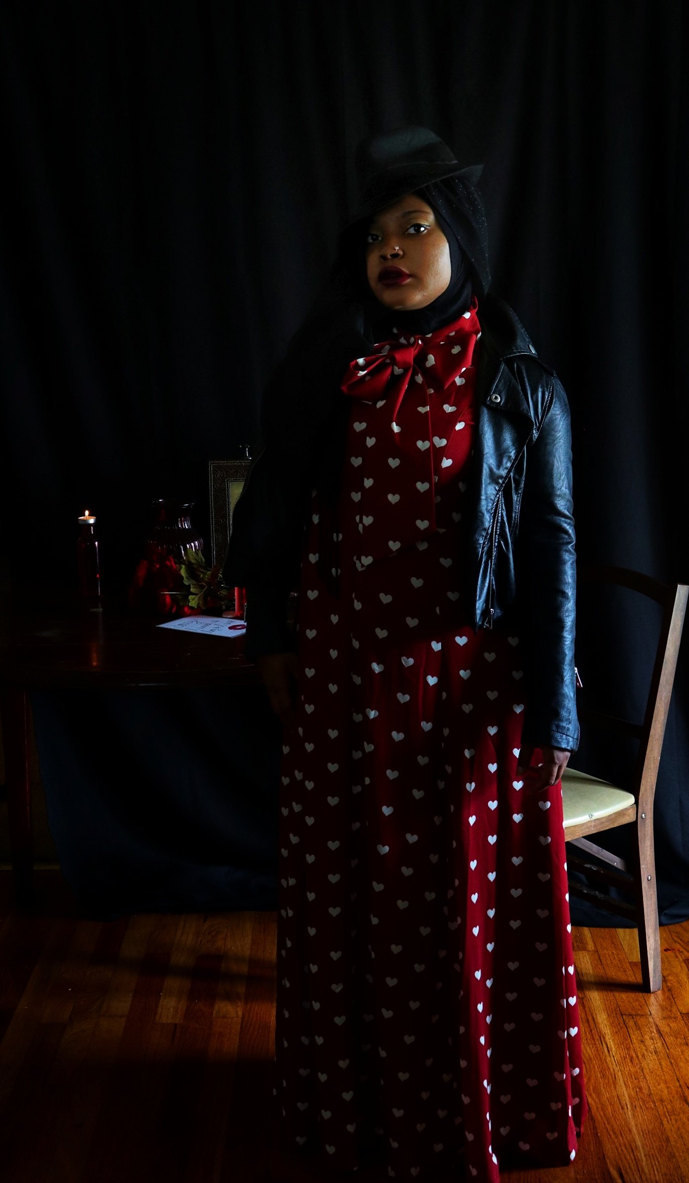 When I first opened the package containing the crimson dress covered in a pattern of white hearts, my immediate thought was “Date Night”. But after quick contemplation, I realized I would not be able to accurately depict something photographically that is beyond my experience. I therefore opted for “Stood Up” as the inspiration for the photo shoot as I have more than enough experience in that arena. (I should also point out that being “ghosted” is the online equivalent of being stood up). Enjoy the story.