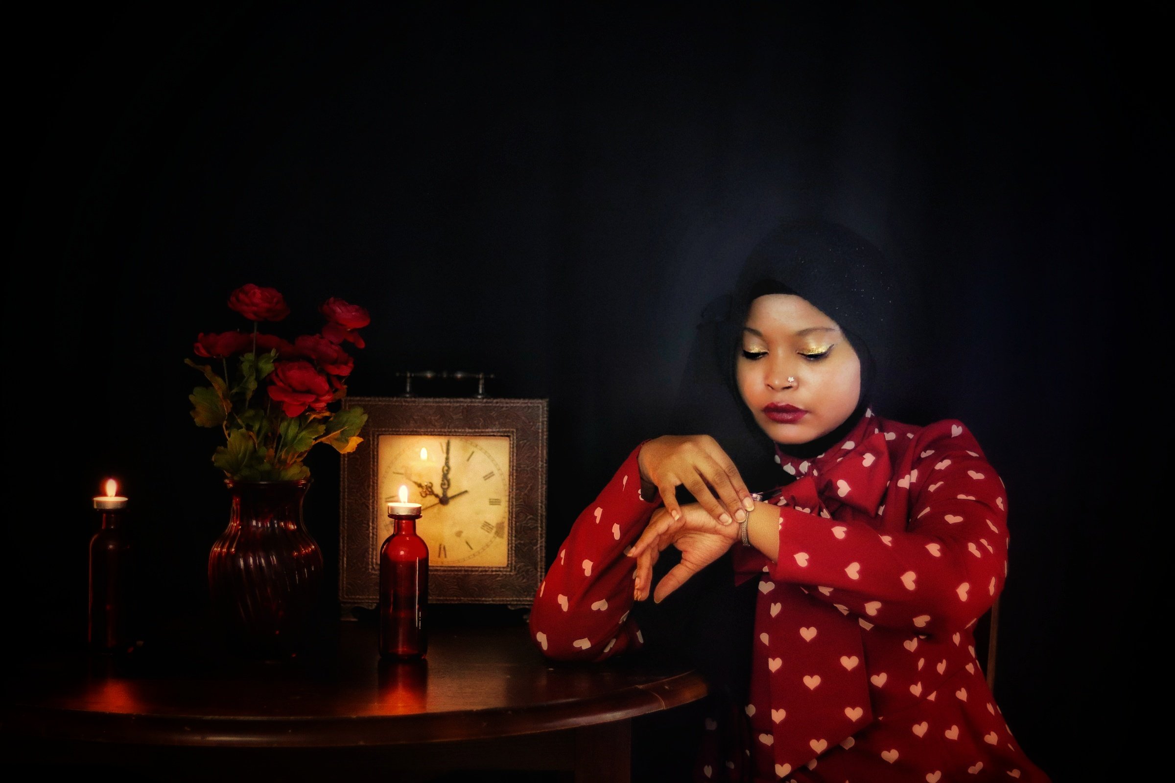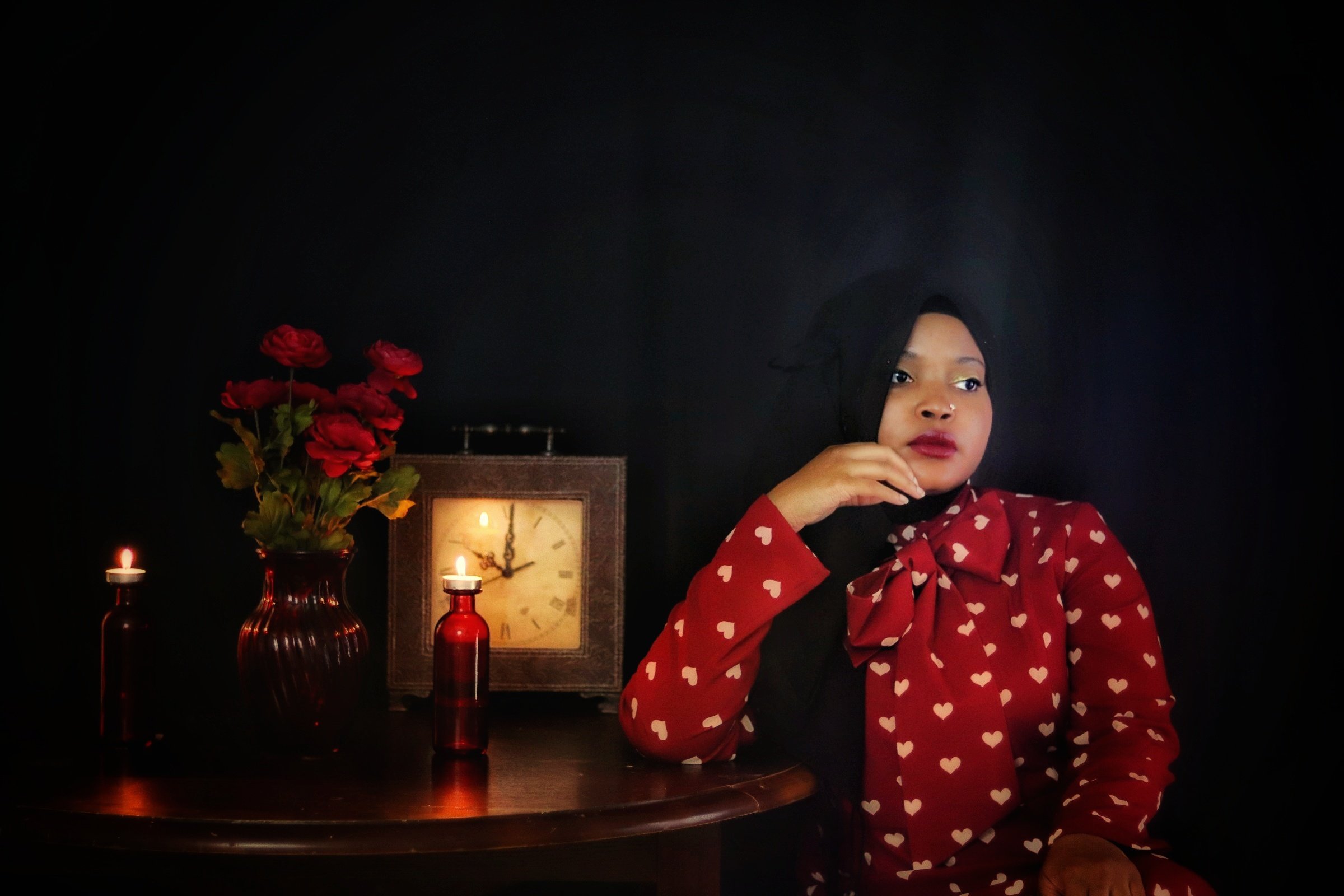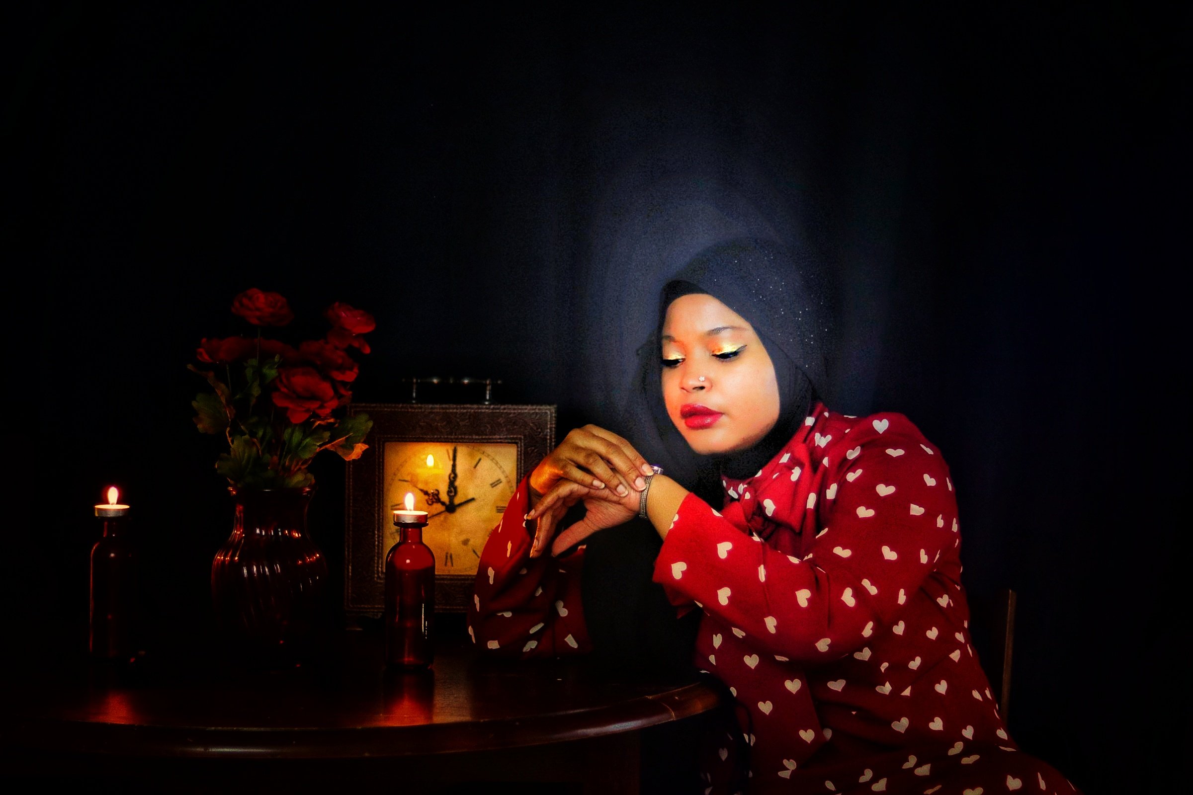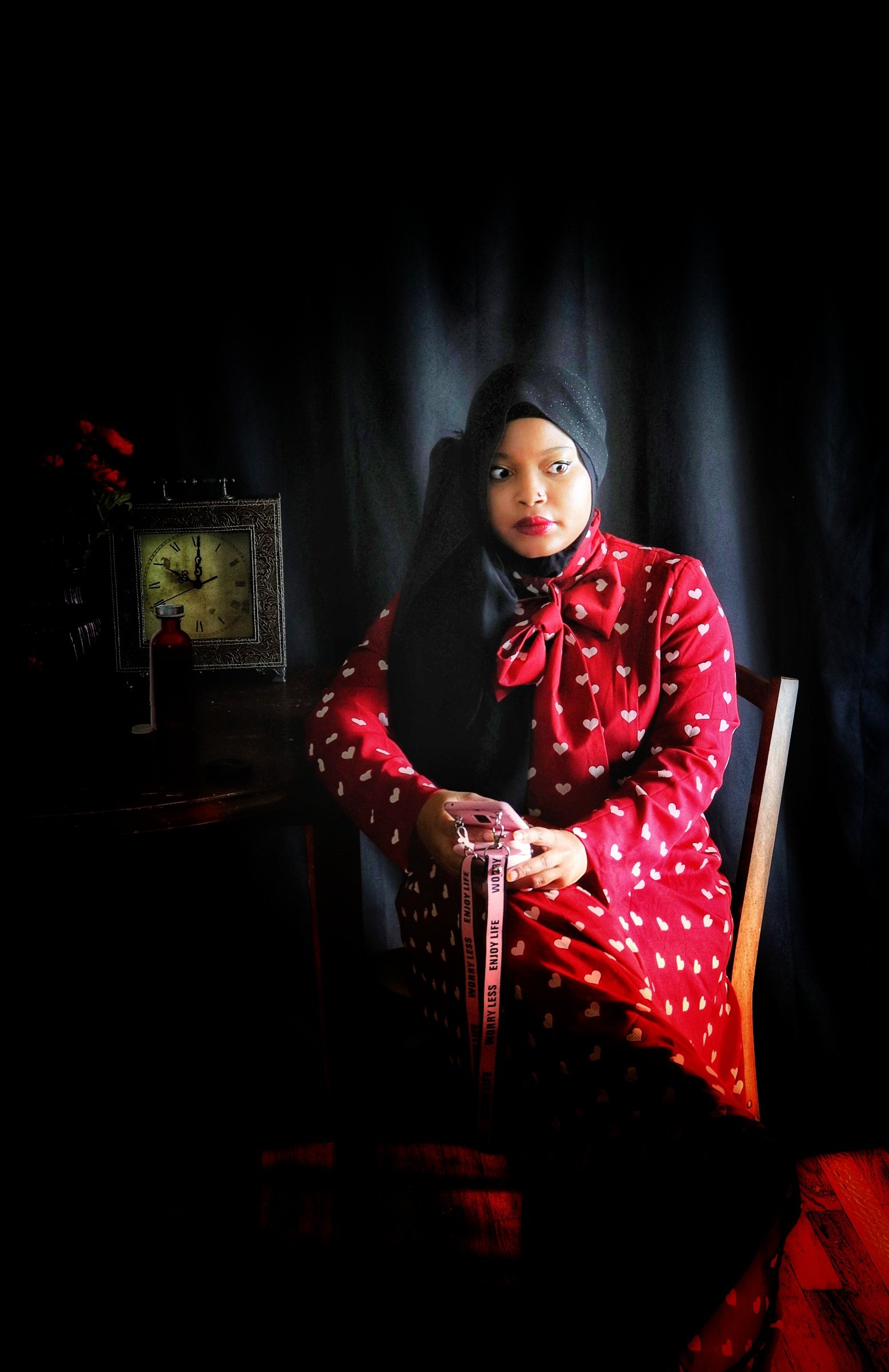 When I first opened the package containing the crimson dress covered in a pattern of white hearts, my immediate thought was “Date Night”. But after quick contemplation, I realized I would not be able to accurately depict something photographically that is beyond my experience. I therefore opted for “Stood Up” as the inspiration for the photo shoot as I have more than enough experience in that arena. (I should also point out that being “ghosted” is the online equivalent of being stood up). Enjoy the story.